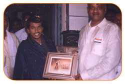 | Mr. N Bitra Receiving A memento from Pinnamaneni Venkateswara Rao, Minister Technical Education, on the occasion of 56th Independence Day (15th August 2003). Bitra Net Pvt. Ltd., has donated two letest configuration computers to a School located in Puttagunta (Krishna Dist, Andhra Pradesh) |